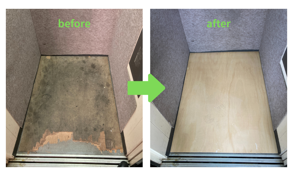 先日、管理している建物のエレベーターかご内の床を保護するベニヤ板が、長年の使用でボロボロになっているのを確認しました。